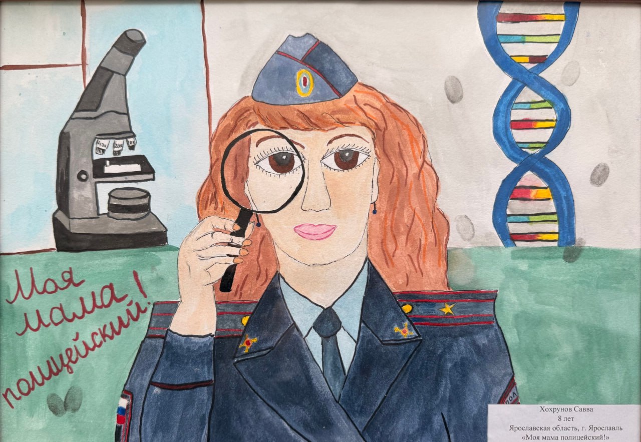 Савва считает себя «слишком любознательным для своего возраста» и стремится учиться «на отлично», чтобы поступить в академию МВД. Мальчик постоянно интересуется маминой профессией эксперта-криминалиста, ему нравится рассматривать клетки и мелкие предметы под микроскопом.На рисунке мальчик изобразил свою маму Юлию – эксперта-биолога и основные атрибуты ее работы – молекула ДНК, микроскоп, отпечатки пальцев. Савва восхищается тем, как исследование мелких деталей приводит к раскрытию преступлений и уверен, что у мамы самая интересная и важная профессия.