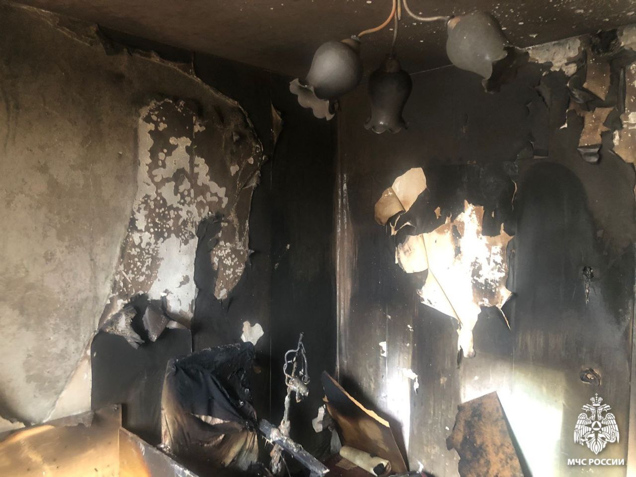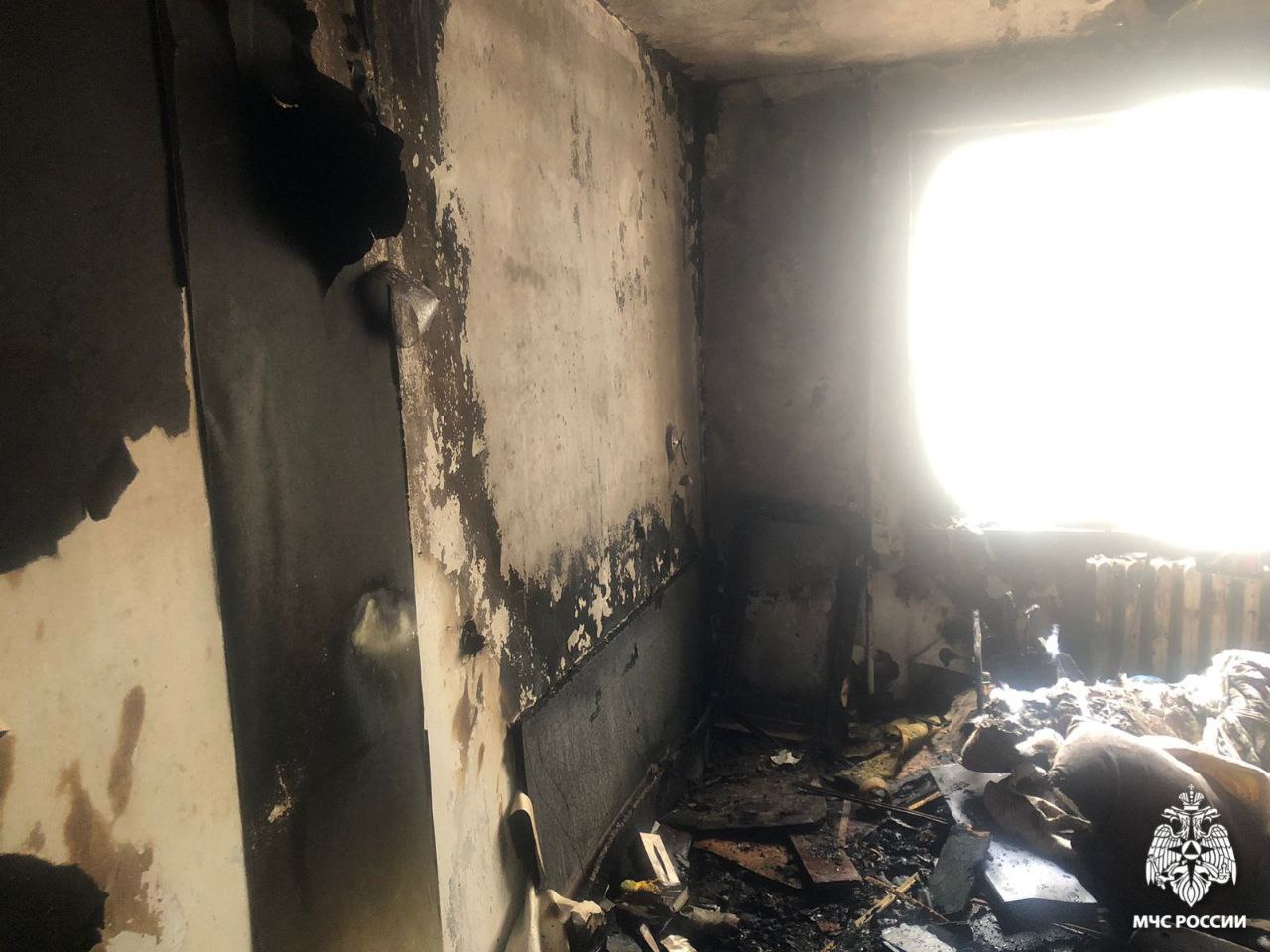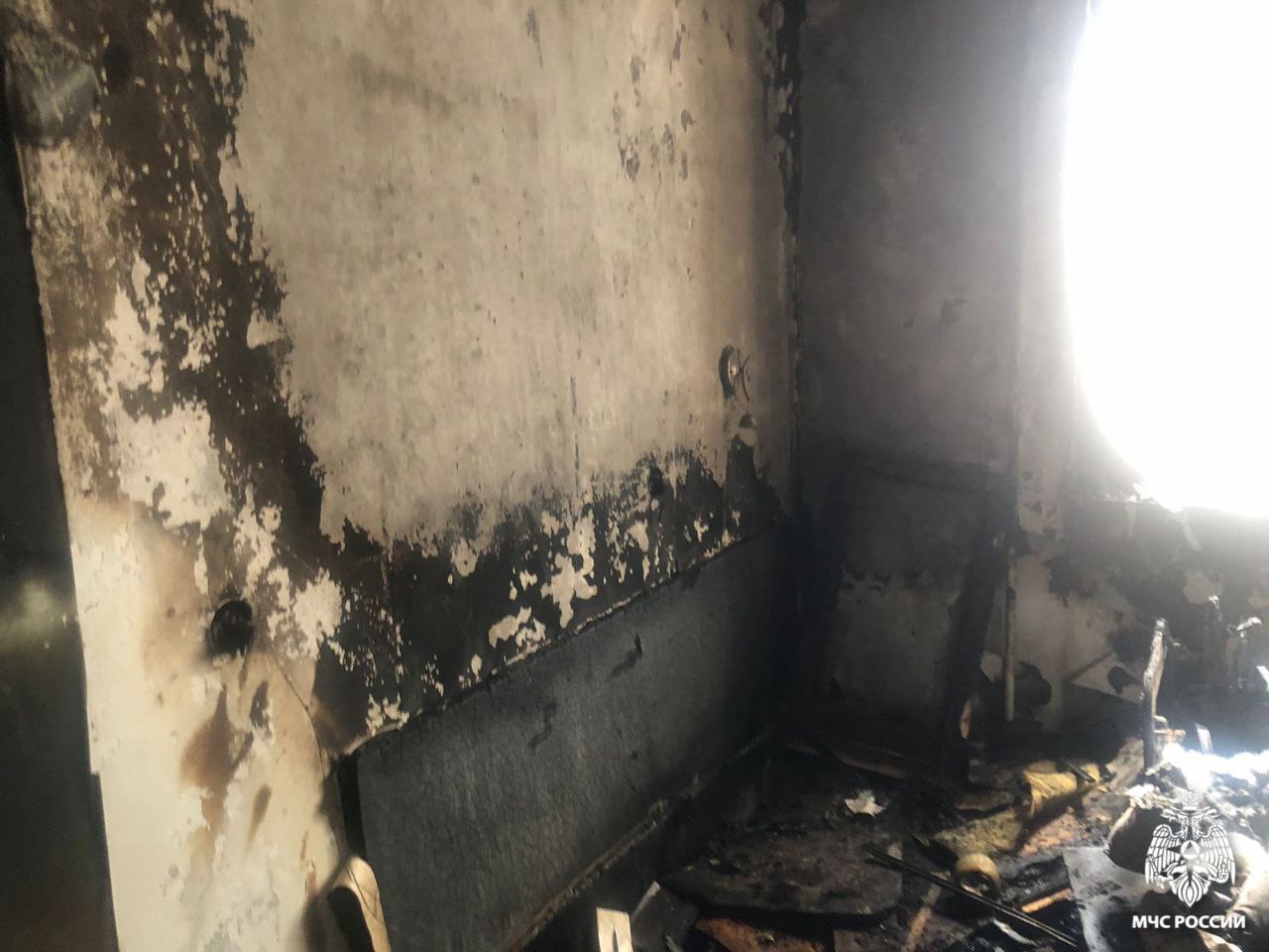 Огнем уничтожены внутренняя отделка, остекление, двери и мебель на площади 16 квадратных метров. Повреждены отделка и предметы интерьера на 2 квадратах. Закопчены стены и потолок квартиры и подъезда на 60 квадратных метрах.