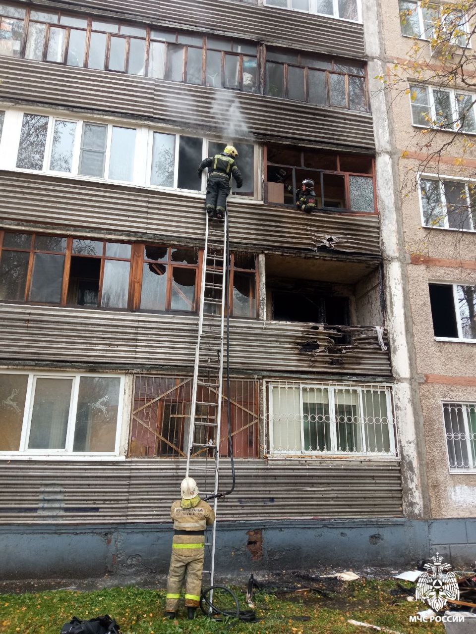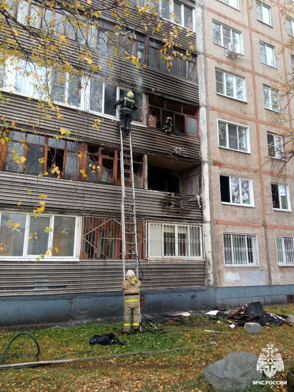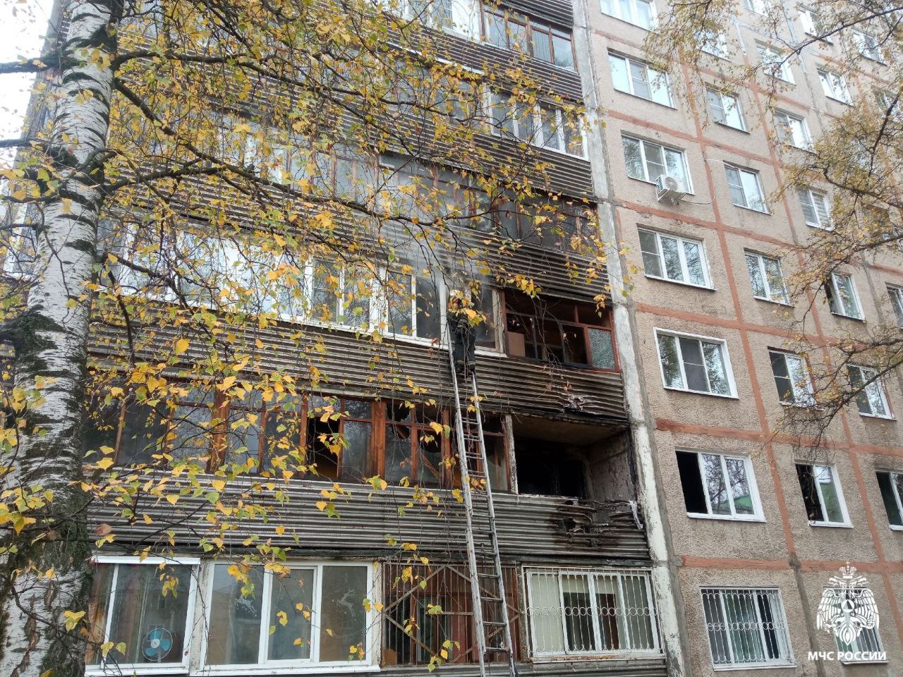 Огнем повреждены балкон и часть комнаты в квартире, уничтожено и повреждено имущество на площади 15 квадратных метров. В 3-х соседних квартирах повреждены балконы на общей площади 11 квадратов.