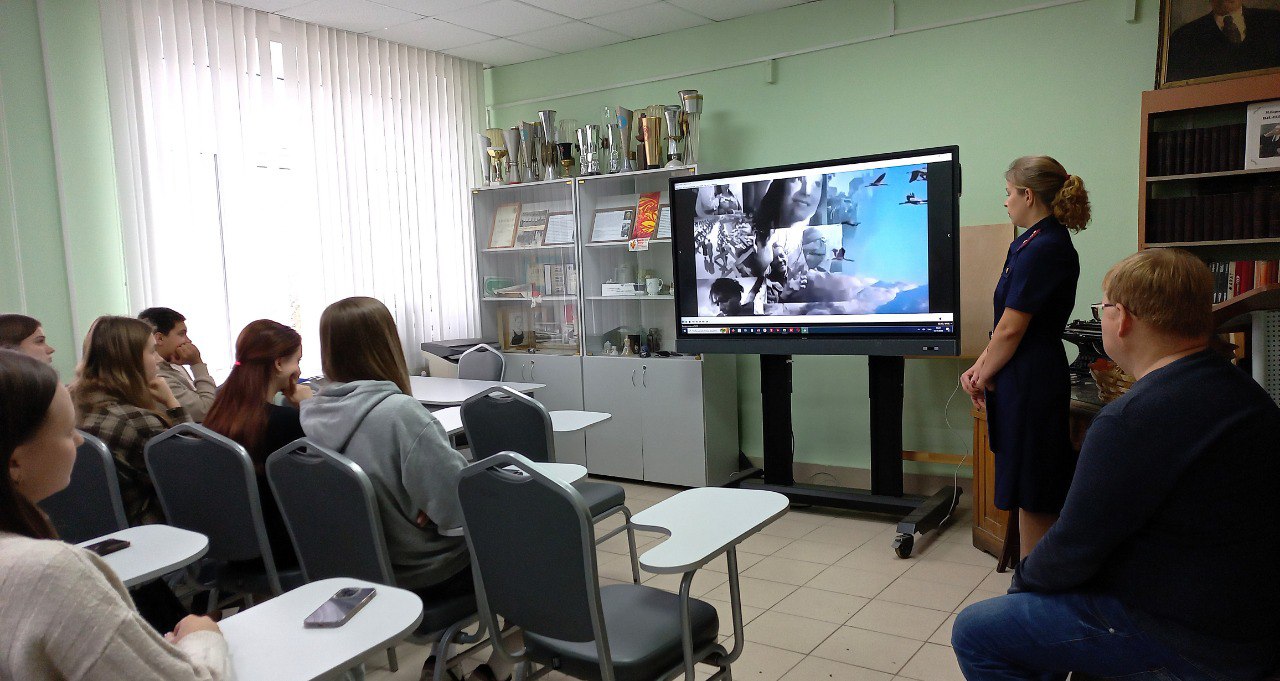В ходе мероприятия помощник руководителя следственного управления (по общественно-политической работе) Пелевина Антонина Александровна рассказала его участникам об истории данной памятной даты и символике акции, продемонстрировала тематический видеоролик, в обсуждении которого студенты приняли участие.