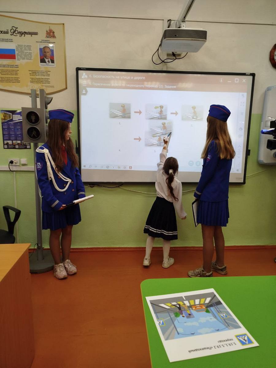 Сегодня на занятии с юными инспекторами первоклассникам рассказали о том, что и на улицах и дорогах есть тоже правила и их надо строго соблюдать. Чтобы занятие для маленьких пешеходов, которые в каникулы будут много времени проводить на улицах, стало интересным, юные инспекторы движения пригласили ребят в путешествие по стране «ПДД». На интерактивноммероприятии малышам обьяснили, кто такой пешеход, какие правила для пешеходов существуют, какие опасности может таить в себе дорога и что может отвлекать от перехода проезжей части, а также зачем нужны световозвращающие элементы. Первоклассники активно участвовали в мероприятии, с большим интересом моделировали дорожные ситуации и делали своими руками световозвращающие изделия.