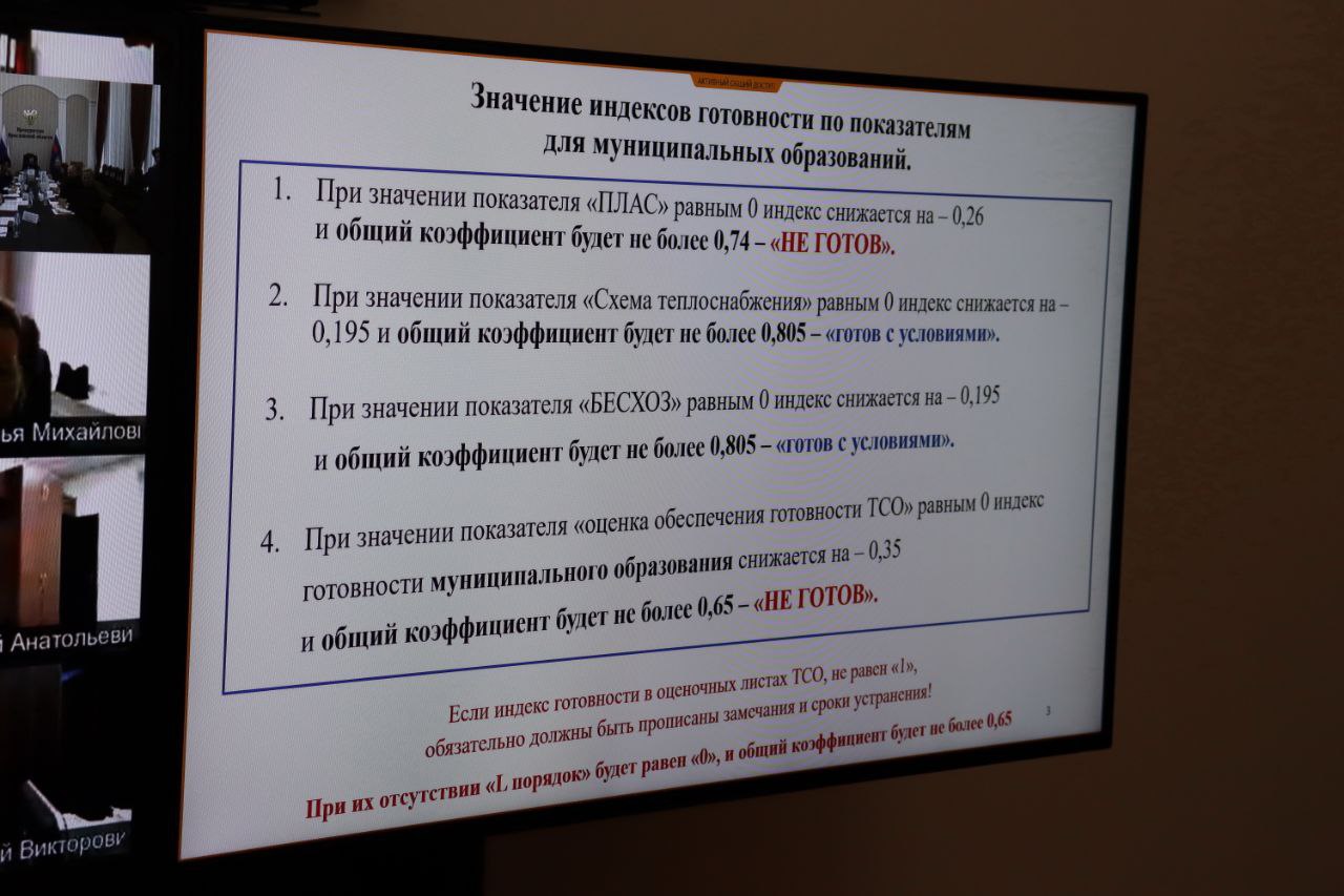 Участники совещания обсудили вопросы готовности муниципальных образований к отопительному сезону, особенности подготовки документов для получения паспортов готовности, недостатки, требующие устранения в первоочередном порядке.