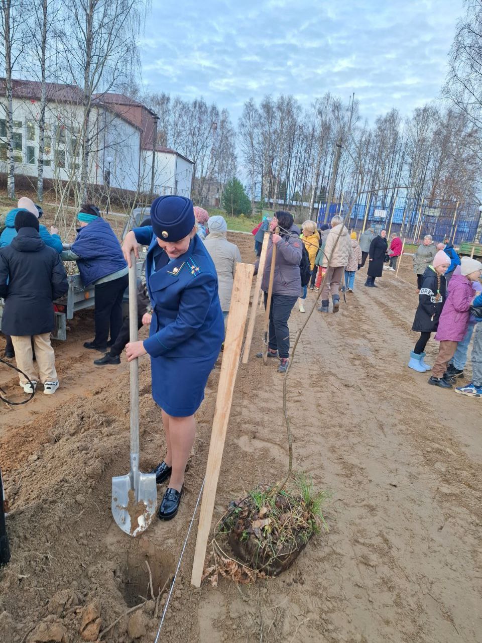 В канун Дня народного единства прокурор Брейтовского района Светлана Смирнова приняла участие в церемонии посадки деревьев на аллее Героев специальной военной операции.