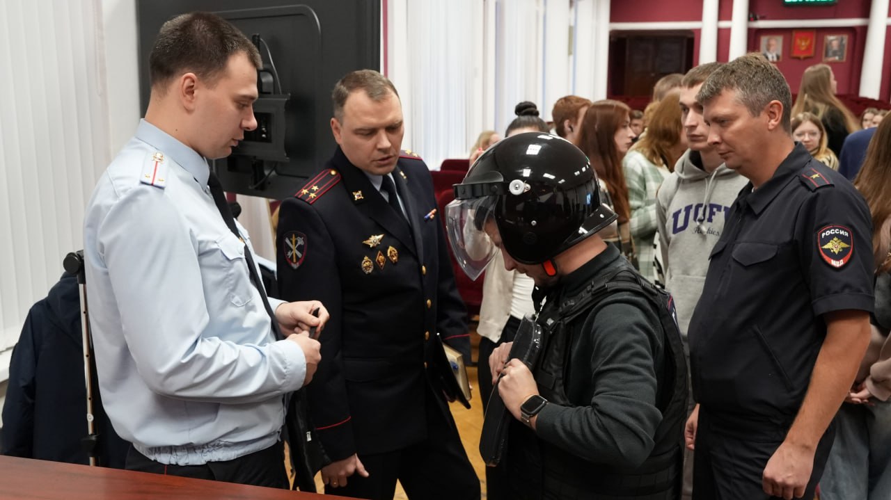 Кроме того, представители подразделения центра хозяйственного обеспечения организовали для студентов выставку образцов форменного обмундирования сотрудников органов внутренних дел.