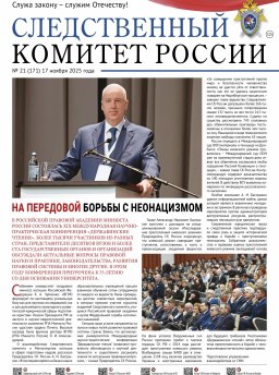 На официальном сайте Следственного комитета Российской Федерации в разделе «Издания Следственного комитета России» размещен очередной номер газеты «Следственный комитет России» № 21 (171) от 17 ноября 2025 года.