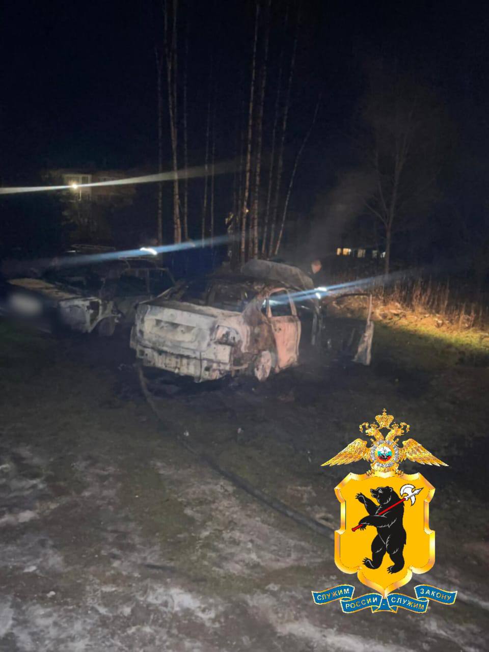 Ночью в полицию поступила информация о возгорании трех автомобилей, припаркованных в поселке Борок Некоузского района.