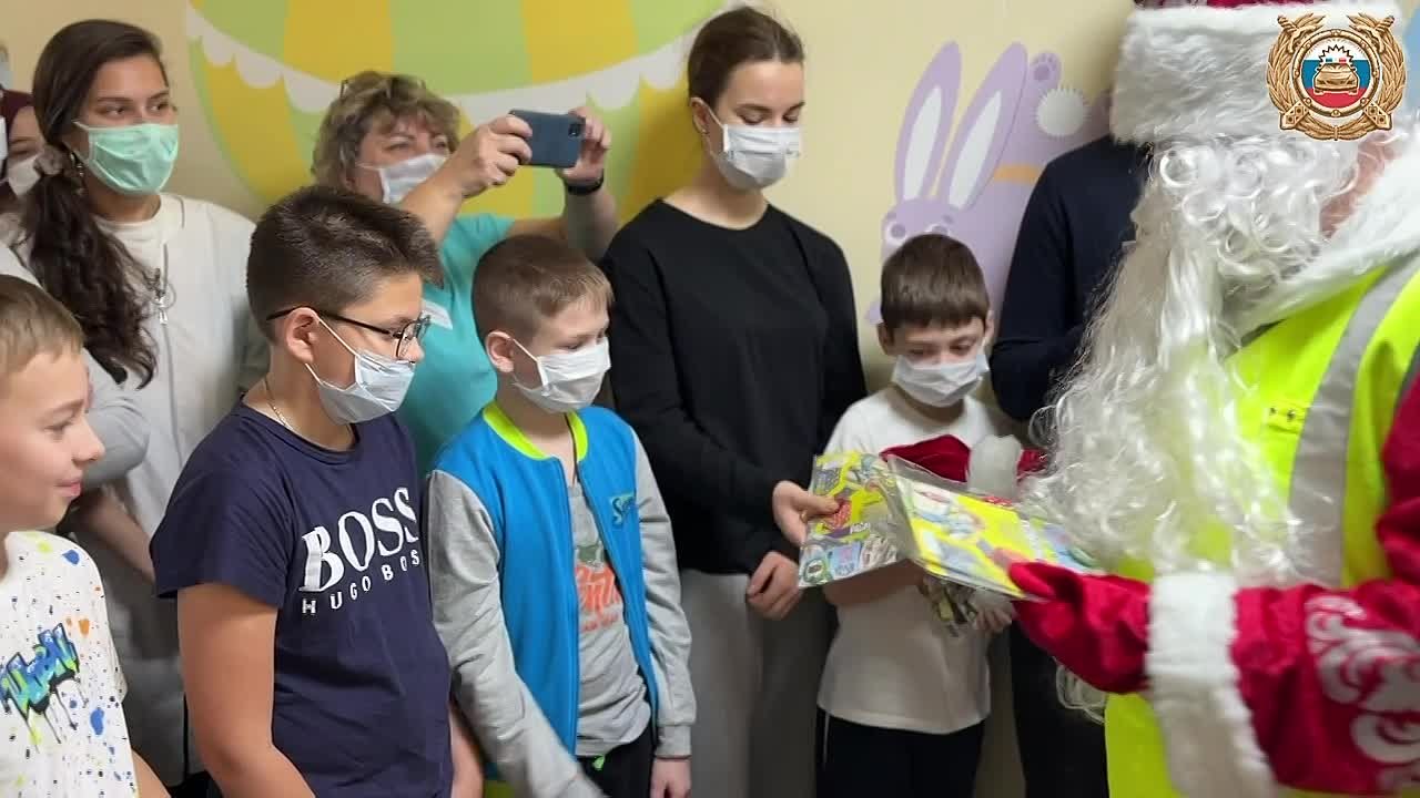 Полицейский Дед Мороз с автоинспекторами пришли в гости к ребятам, находящимся на лечении в детском отделении городской больницы Ярославля.