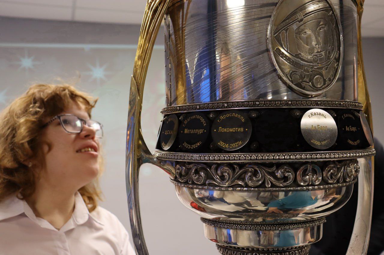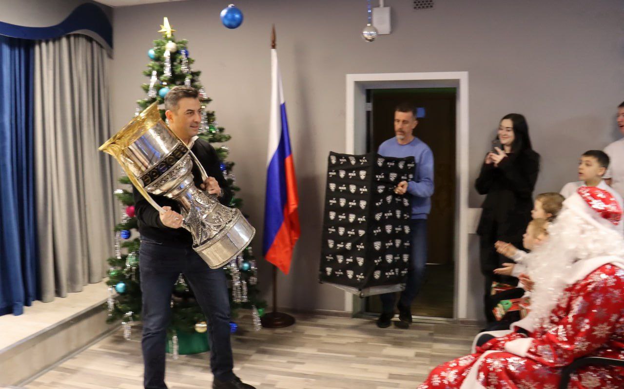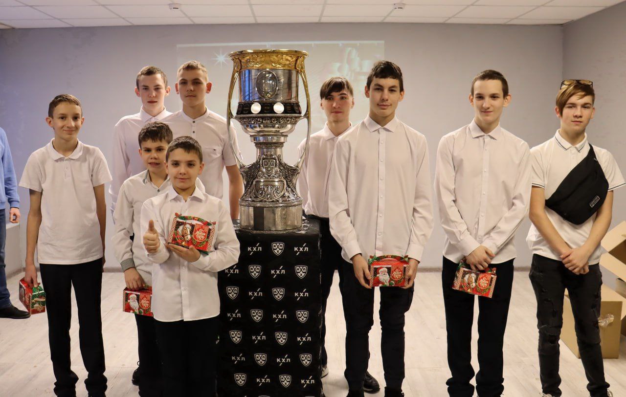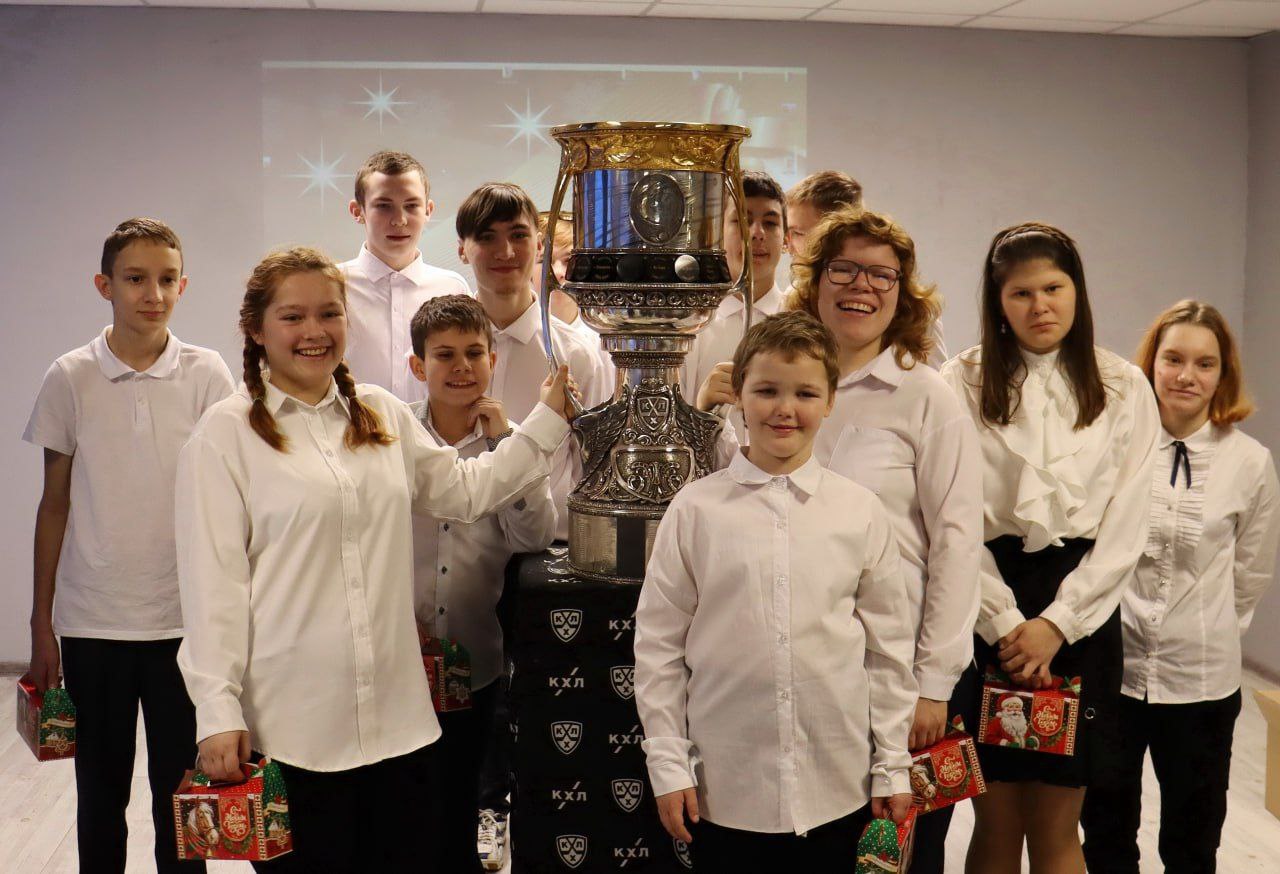 Новый год - время чудес. Одним из них стал сюрприз, который приготовили для ребят прокурор области Климент Юрздицкий и президент хоккейного клуба «Локомотив» Ярославль» Юрий Яковлев. В актовом зале школы-интерната побывал главный трофей Континентальной хоккейной лиги - Кубок Гагарина.