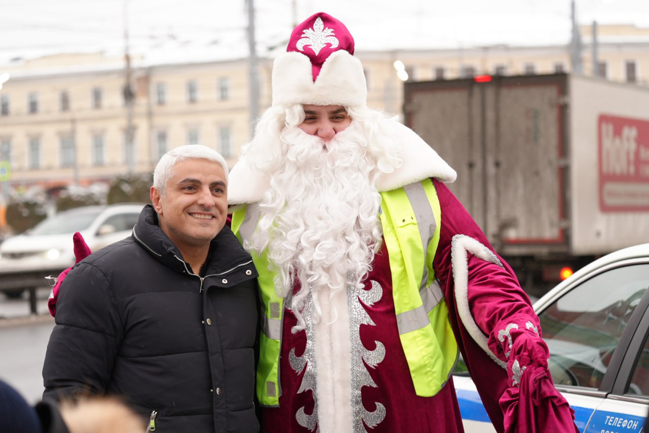 Полицейский Дед Мороз тепло поздравлял водителей с наступающими праздниками, присоединившись к призывам инспекторов и ребят быть осторожными на дорогах, вручал ароматный символ Нового года – мандарин, Мероприятие получилось понастоящему праздничным и полезным.