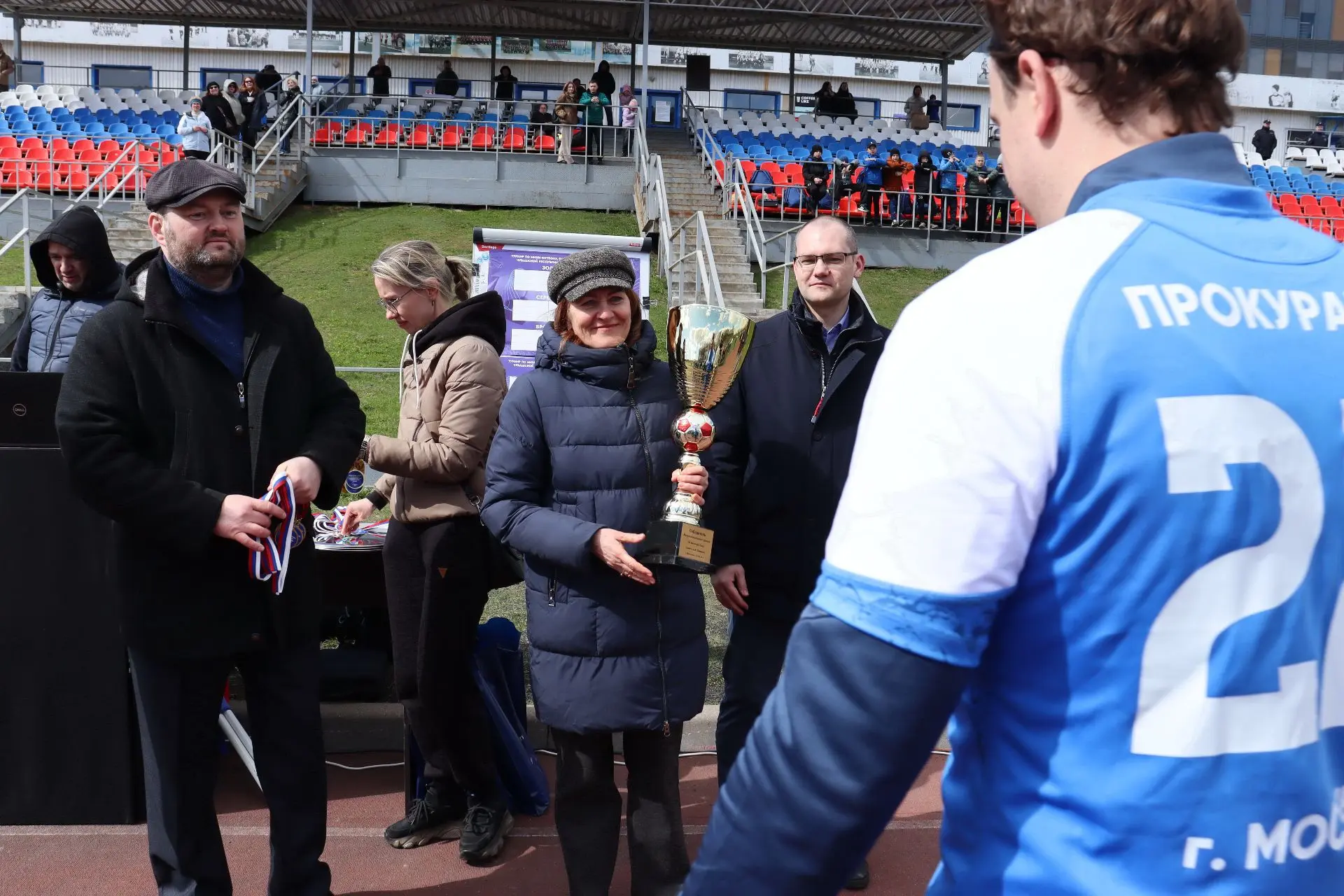 Почетными гостями турнира стала семья Андрея Валерьевича, а его супруга Людмила Владимировна вручила победный кубок капитану команды прокуратуры города Москвы.