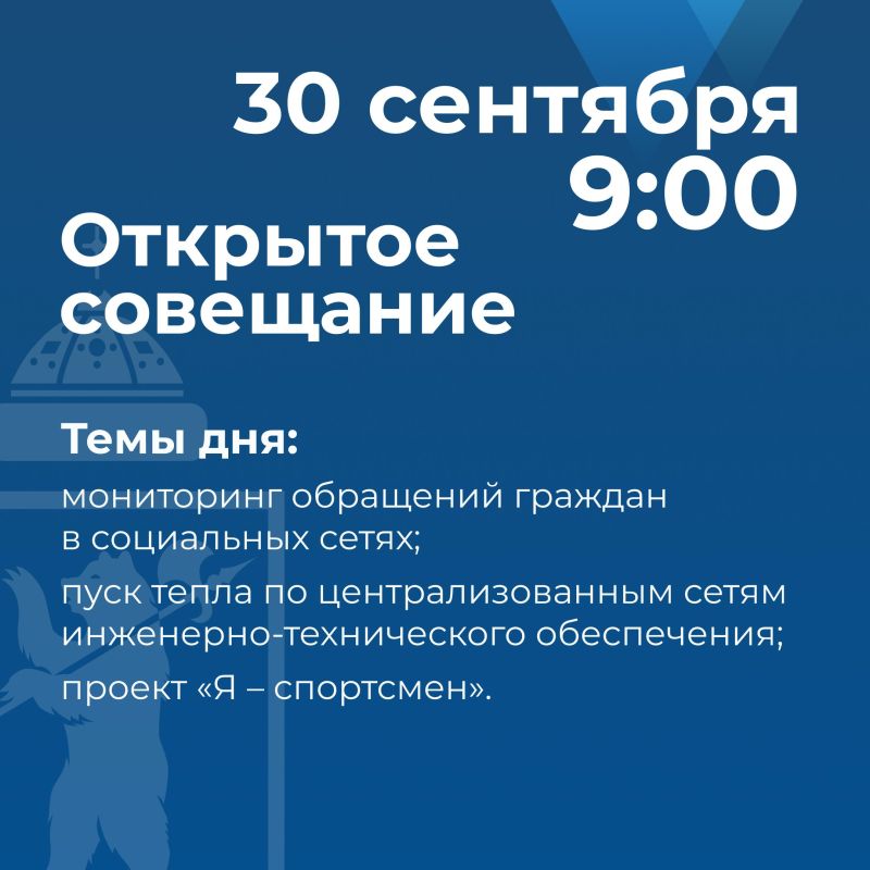 30 сентября в 9:00 состоится публичная планерка под руководством мэра Артёма Молчанова.На совещании поднимут актуальные вопросы городской жизни. Подробнее — в карточкеТрансляция будет доступна на официальном портале мэрии города Ярославля....