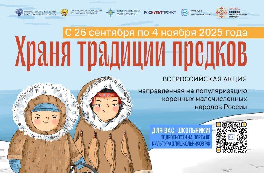 26 сентября стартует всероссийская акция «Храня традиции предков», организованная в рамках проекта «Культура для школьников» и Всероссийского культурного форума коренных малочисленных народов России.Конкурс пройдет в трех номинациях:- «Живое наследие»...