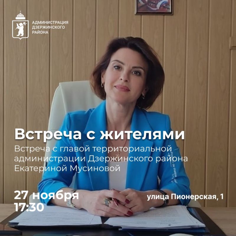 27 ноября в 17:30 состоится встреча с главой Дзержинского района Екатериной Мусиновой.библиотека-филиал №6 имени Трефолева, улица Пионерская,1Формат встречи —...