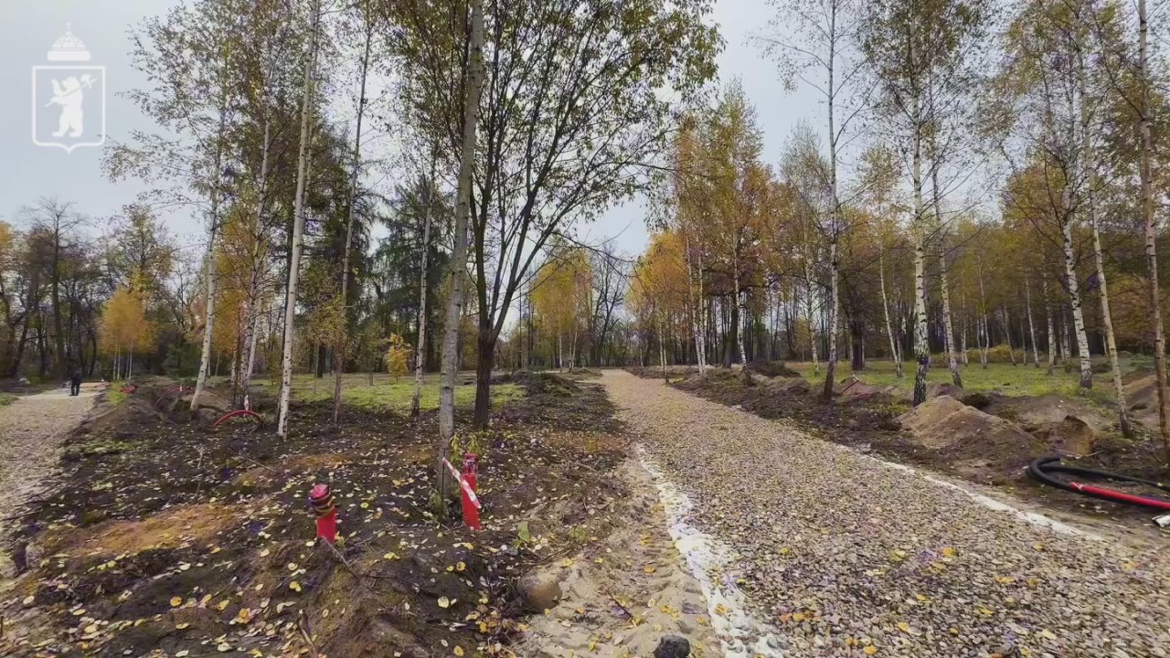 Кроме того, специалисты продолжают оформлять пешеходные дорожки — ранее подрядчик засыпал основание слоями песка и щебня и установил пластиковые бордюры и георешетку. Далее дорожки покроют специальным отсевом. Также в парке уже выполнили щебеночное основание для будущей беседки.