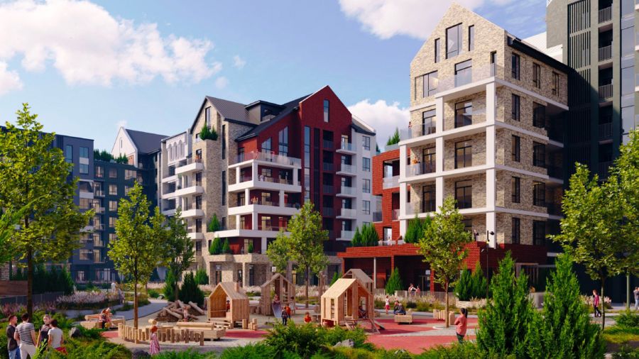На первых этажах зданий разместят аптеку, пункт полиции, спортивный центр и отделение банка.