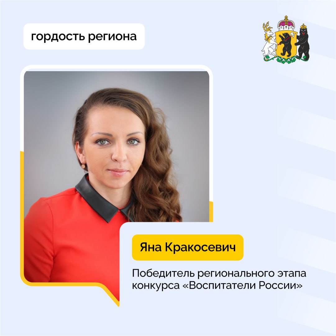 Поздравляем с блестящей победой! Инструктор по физической культуре рыбинского образовательного комплекса «Взлет» Яна Кракосевич стала лучшей в региональном этапе XIII Всероссийского конкурса «Воспитатели России»!