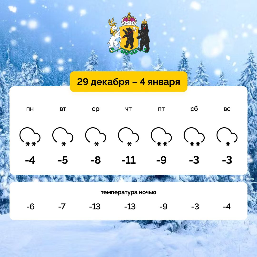 Доброе утро, Ярославль! Начинаем этот день с хороших новостей. Их, кстати, несколько:1 Эта рабочая неделя станет самой короткой в году – всего два дня.2 Новый год – через 2 дня!Пусть ваши предновогодние дни будут наполнены волшебством!