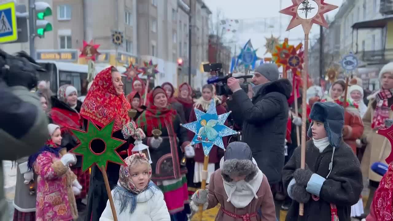 Участниками и зрителями праздника стали жители и гости города. Они прошли по главной улице Рыбинска в костюмах, специально сшитых для шествия, со звездами и ангелами ручной работы, под колядки и народные песни.Уличное представление...