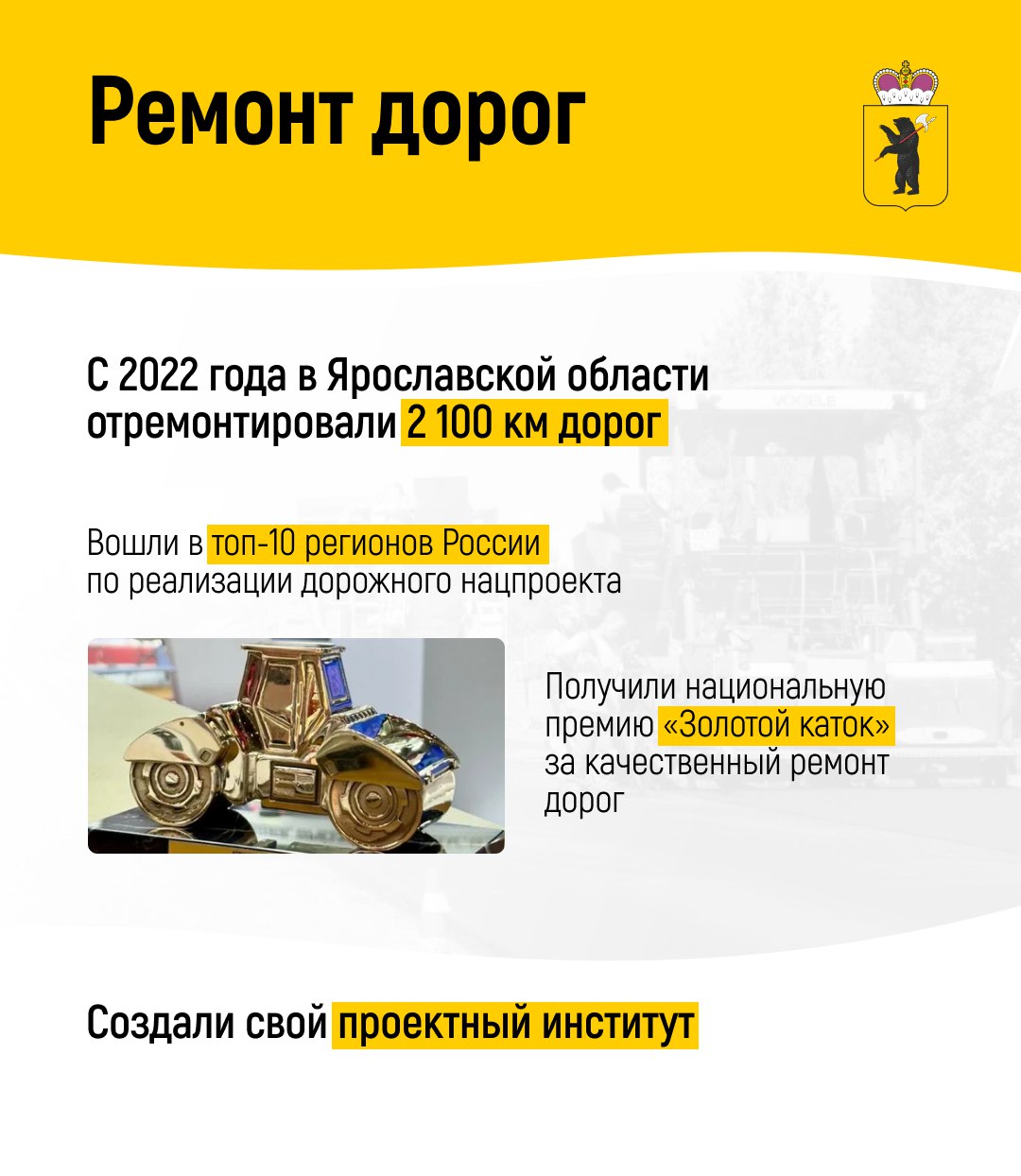 С 2022 года регион благоустроил более 950 дворов и парков. А также обновил 2100 км дорог — по качеству этой работы Ярославская область вошла в десятку лучших по России.
