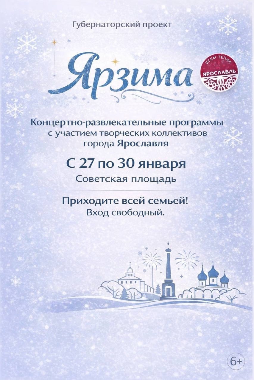 С 27 по 30 января на Советской площади пройдут концертно-развлекательные программы с участием творческих коллективов Ярославля. Жителей и гостей города ждут музыка, танцы, игры и интерактивные развлечения для всей семьи.