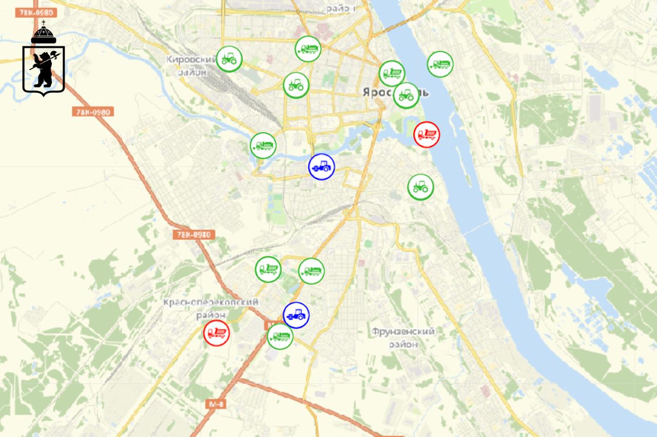 В городе действует система мониторинга коммунальной техники, которая позволяет контролировать уборку снега и обработку улично-дорожной сети от наледи в режиме реального времени. Сервис работает на официальном портале Ярославля.
