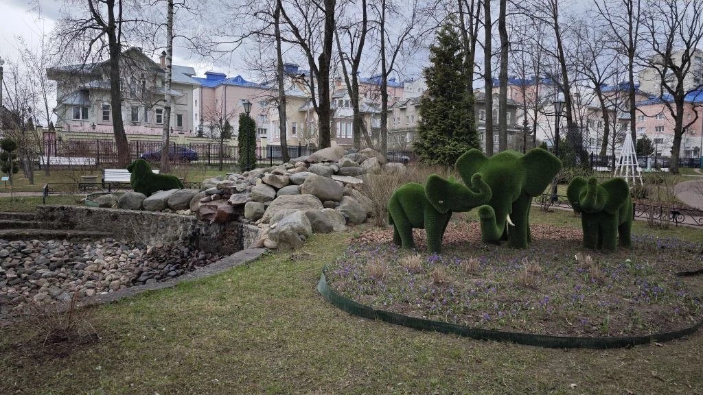 В межсезонье была проведена большая работа. Отремонтирован грот, покрашен фонтан и входная группа, почищен пруд, газон, проведена акарицидная обработка территории.