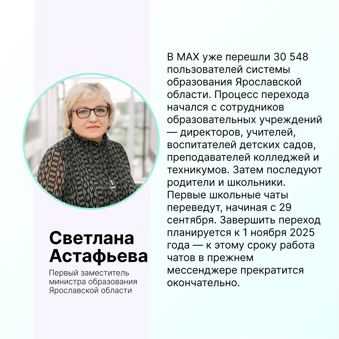 При переезде в MAX не нужно создавать новые учебные чаты — «Сферум» сохранит все, что важно пользователю. В Ярославской области подключение завершат к 1 ноября. После этой даты работа старых чатов прекратится окончательно.