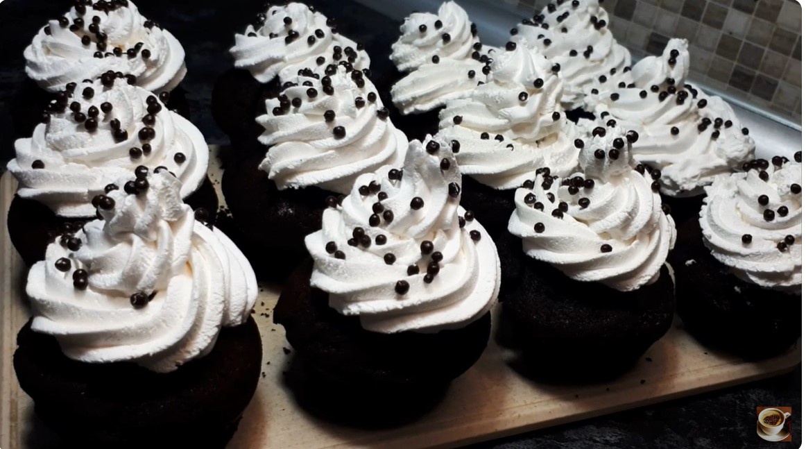 Пока кексы остывают, можно заняться глазурью и кремом. Глазурь готовится путем смешивания всех необходимых продуктов на маленьком огне до получения однородной массы. После этого, используя специальную форму, создают небольшие отверстия в каждом кексе и наполняют их теплой шоколадной глазурью. Завершает кулинарный шедевр оформление кремом, приготовленным из взбитых сливок и сахарной пудры.