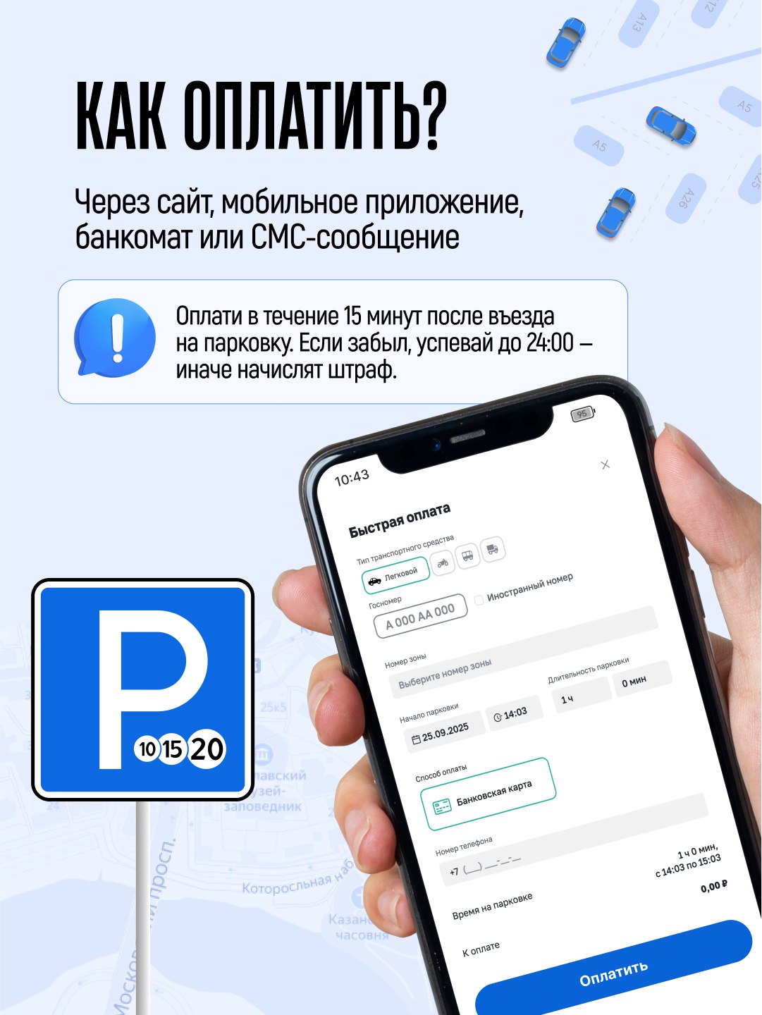 Парковочное пространство будет едино на весь регион. Это означает одно приложение, один пользовательский кошелек, связь камер и общую систему скидок. Об этом, а также случаях, когда платная парковка будет бесплатной — в карточках.
