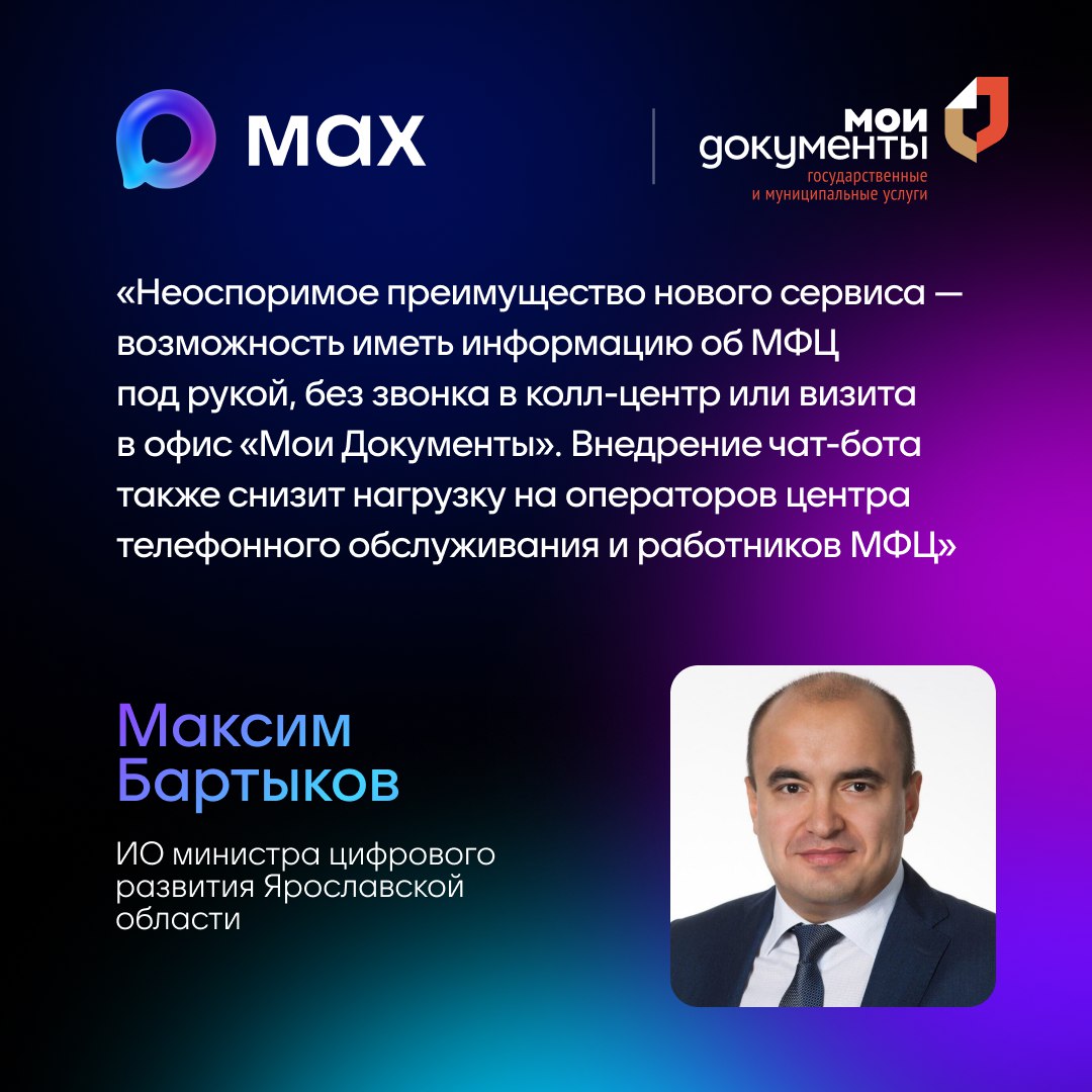 Чтобы открыть чат с ярославским МФЦ, скачивайте приложение MAX и переходите по ссылке max.ru/mfc_yaroslavl_bot.