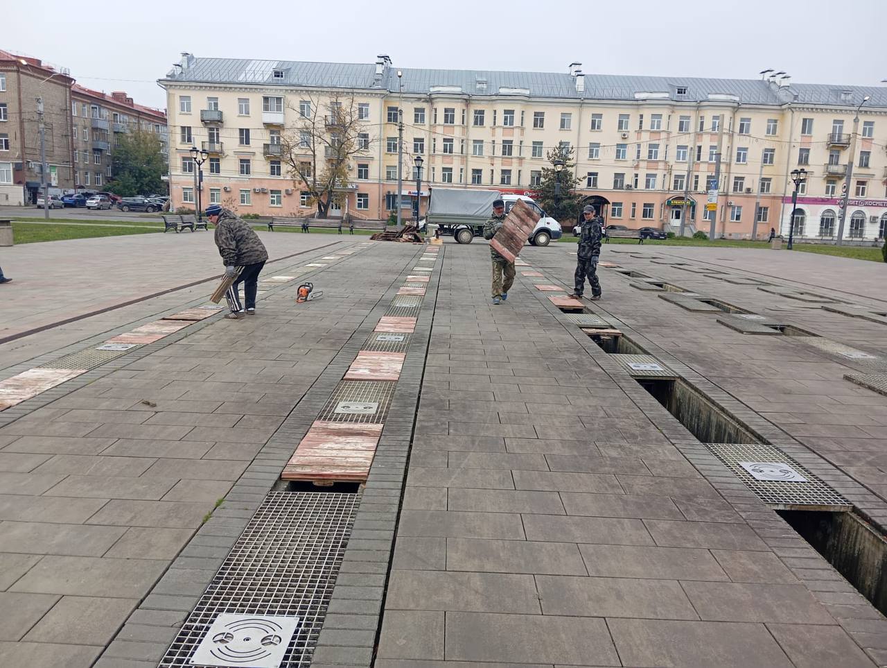 Одним из первых ушел на зимовку фонтан у Авиатора. Перед консервацией воду из системы слили, чашу и форсунки промыли, водоводы просушили. На следующей неделе аналогичные работы проведут на фонтанах в парке на Димитрова, в Волжском и Карякинском саду. Фонтан на площади Дерунова требует другого подхода. После промывки и просушки системы с конструкции снимают железные решетки, меняют их на деревянные щиты. Сверху укрывают резиновым покрытием, которое защищает от попадания снега. Фонтан-шар на бульваре Ушакова также моют и просушивают, снимают водяной насос, шар из мрамора закрывают сверху деревянным коробом.