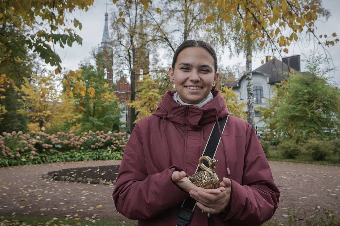 Бронзовую фигурку закрепили на перилах у пруда. Автор идеи — ученица 11 класса школы №30 Елизавета Горская, победительница научно-образовательной программы для старшеклассников «Интеллектуальный реактор». Реализовать проект в металле школьнице помогли в лаборатории РГАТУ «Новые материалы и аддитивные технологии». Ранее Карякинский сад уже украсила Золотая рыбка. Ее придумала другая участницы «Интеллектуального реактора» Оксана Шаповалова.