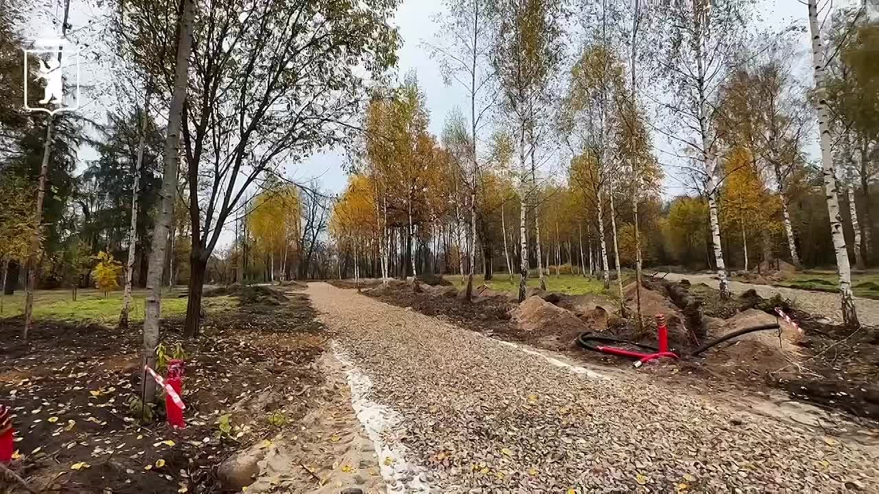 В сентябре мы приступили к его благоустройству. Разметили и отсыпали парковые дорожки: их основание уже укрепили песком, щебнем и георешеткой, теперь специалисты отсыпают их декоративным отсевом.