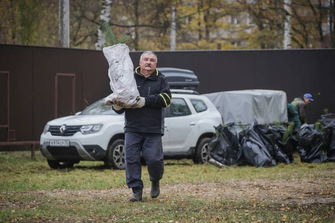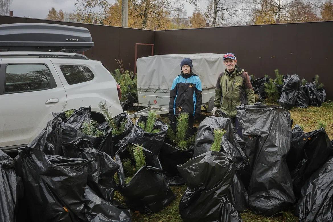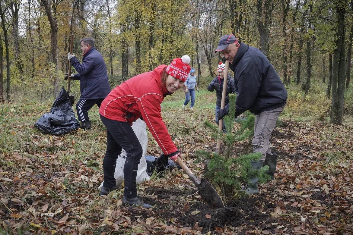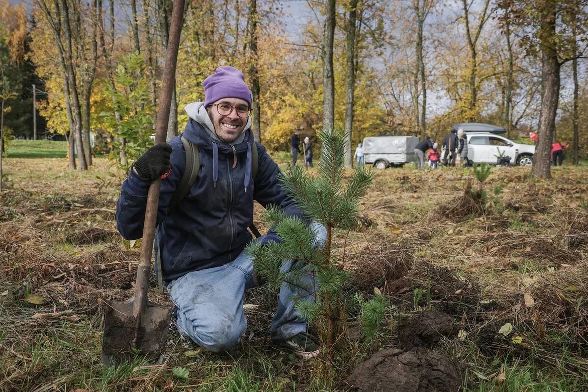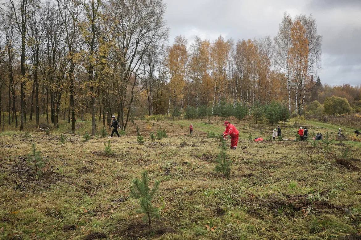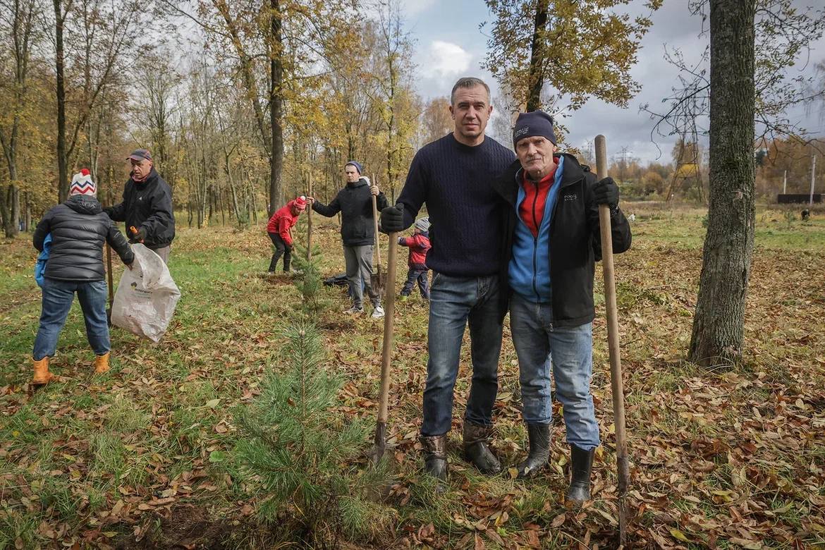 300 сосен сегодня высаживали в парке на проспекте генерала Батова.