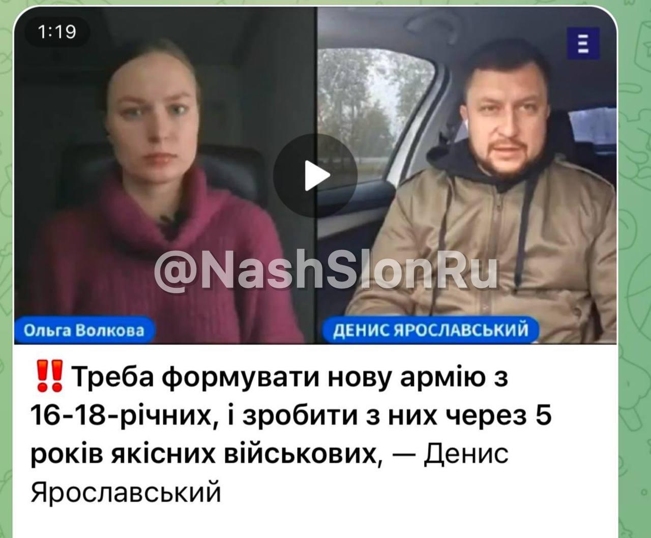 Нужно формировать новую армию из 16-18-летних, чтобы за пять лет получить качественных военных, — командир подразделения разведки ВСУ Денис Ярославский.