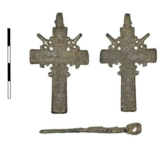 При раскопках во дворе усадьбы Матвеевских (Советский переулок, 5) археологи сделали редкую находку —нательный крест-тельник, которому около 300 лет.