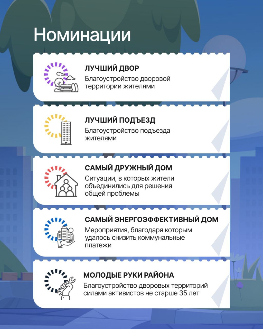 В этом году соревнование пройдет по пяти номинациям. С 15 октября по 15 декабря на портале будет организовано народное голосование за поданные работы. Победителей определит федеральное жюри в декабре по итогам голосования.
