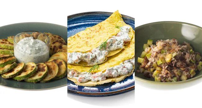 Блины из кабачков: Эти блинчики, невероятно легкие и воздушные, станут отличным дополнением к завтраку или легкому перекусу. Грамотное отжатие кабачков встроит нужную текстуру и сделает их идеальными партнерами для любимых начинок, например, творожного сыра или слабосоленого лосося.