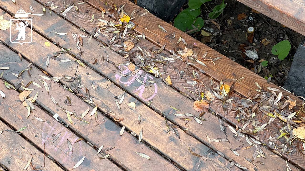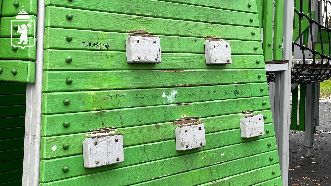 В парке 30-летия Победы в Дзержинском районе вновь зафиксированы акты вандализма — повреждены малые архитектурные формы и детский городок, исписаны скамейки и шахматные доски.