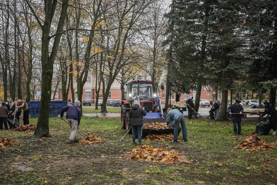 Продолжаем готовить город к зиме. На Комсомольской площади сегодня прошел осенний субботник.