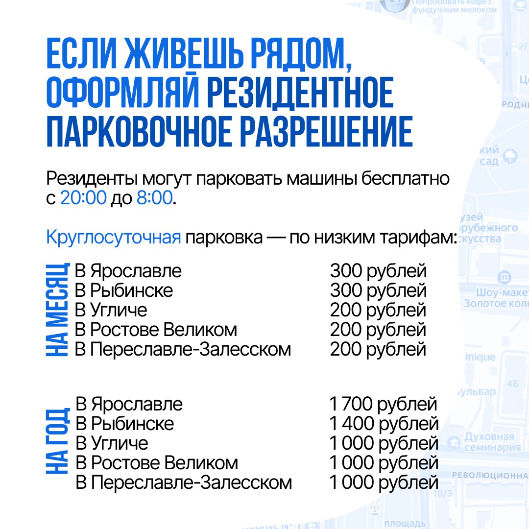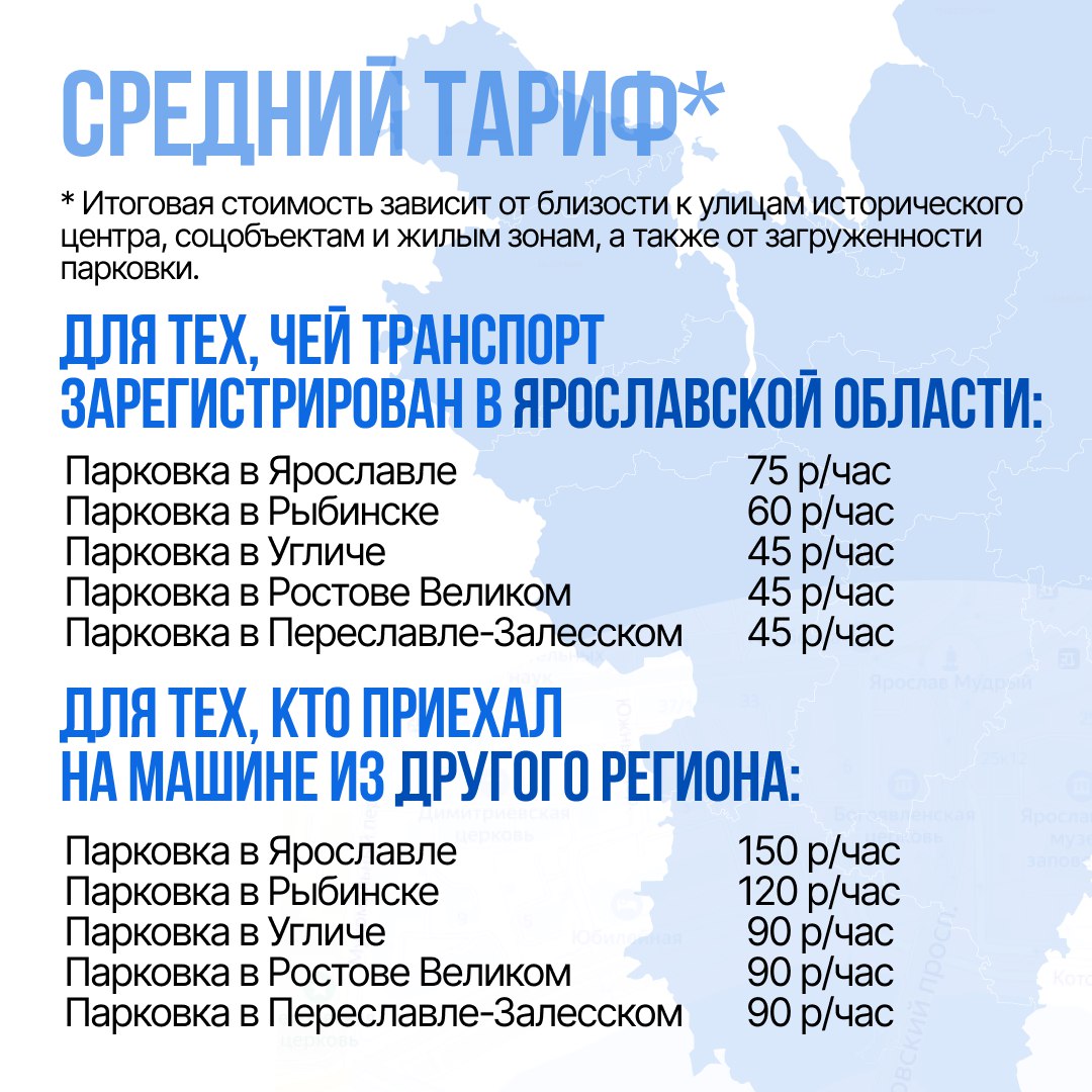Стоимость тарифа будет зависеть от близости к историческому центру, соцобъектам и жилым зонам, а также от загруженности парковки. За каждым, чья машина зарегистрирована в Ярославской области, учтена скидка — для гостей региона тарифы в два раза выше.
