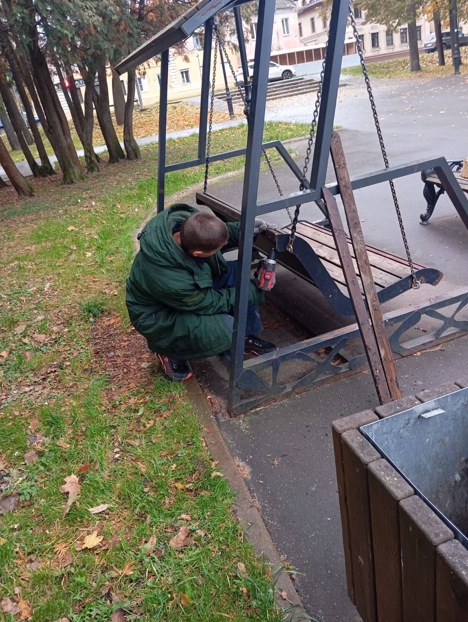На этой неделе приводили в порядок качели и лавочки в Волжском парке, ремонтировали скамейки на площади им. Герасимова и Нобелевском бульваре. Кроме того,