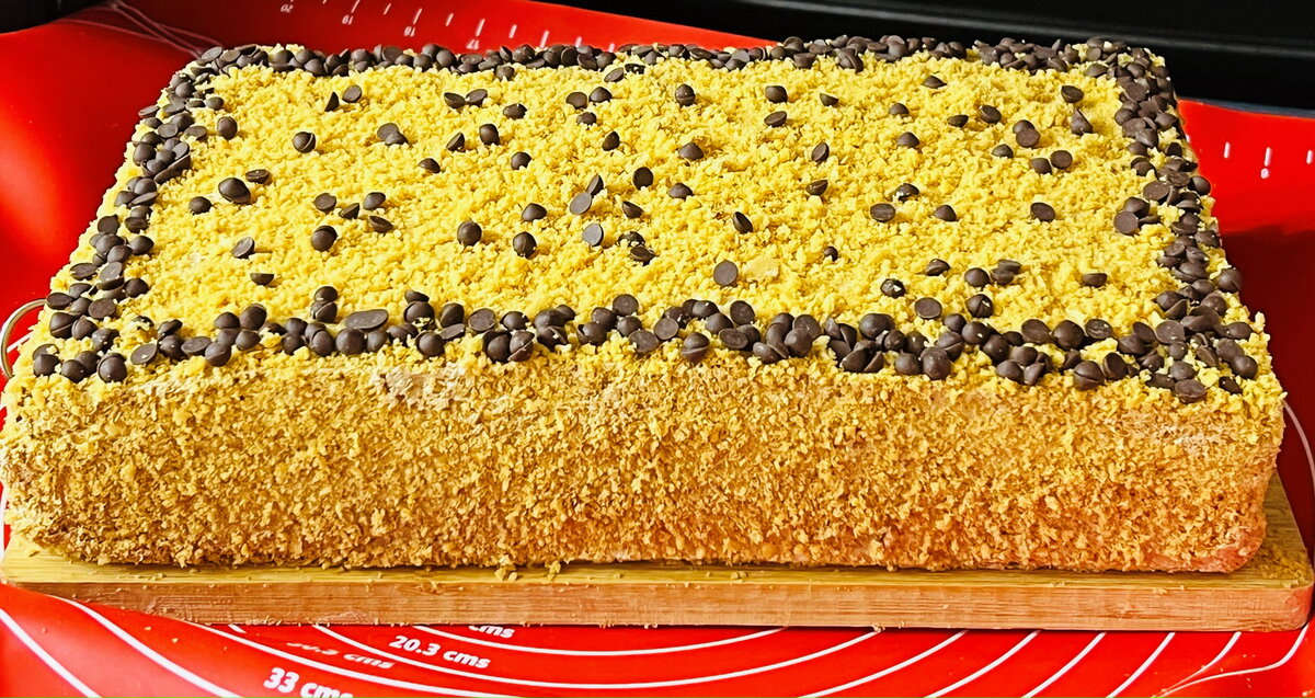 Разделите получившееся тесто на две равные части. Выпекайте два больших коржа размером 30х40 см в заранее разогретой до 180 градусов духовке в течение 5–7 минут. Дайте коржам остыть, прежде чем переходить к приготовлению крема.