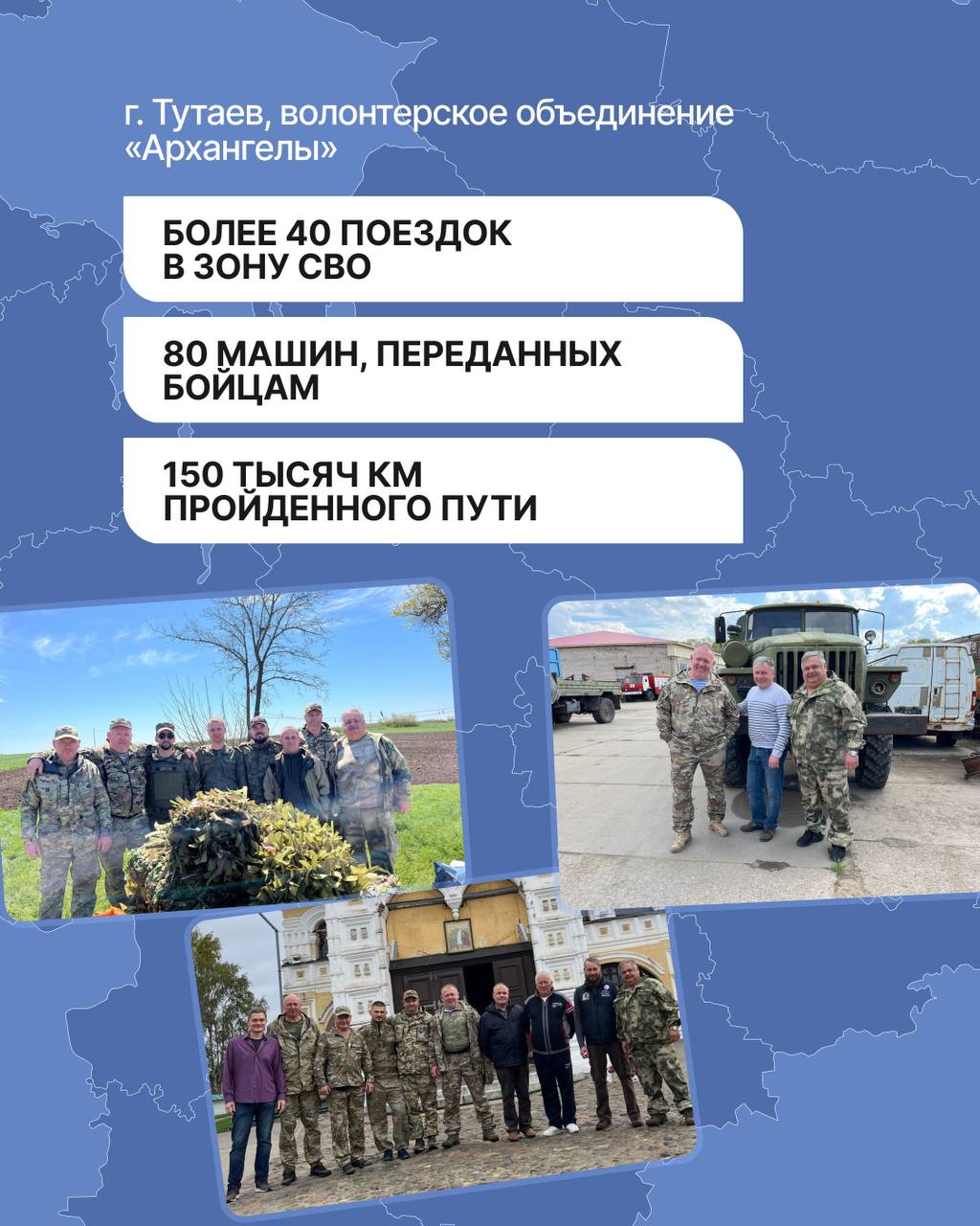 Волонтерское объединение «Архангелы» образовалось в Тутаеве в 2022 году. Его участники собирают гуманитарные грузы и сами отвозят их в зону СВО на автомобилях, которые после дороги также отдают бойцам.