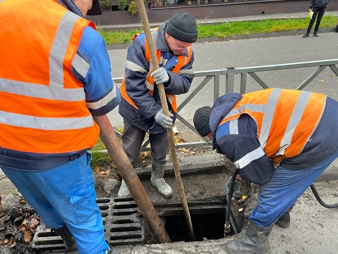 Работы по очистке ливневой канализации ведутся практически круглогодично. Бригада начинает работать с ранней весны. Рабочие очищают от наледи и вскрывают решетки и крышки колодцев, прочищают трубы и каналы, чтобы паводковые воды отходили свободно.