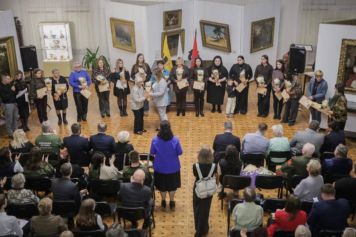 В рамках торжественного открытия благодарственные письма вручили участницам фотопроекта и социальным партнёрам, которые помогли реализовать проект. 15 благодарностей и 4 нагрудных знака волонтерам Рыбинска за весомый вклад в поддержку бойцов СВО вручили представители Московского регионального отделения общероссийского Народного Фронта.