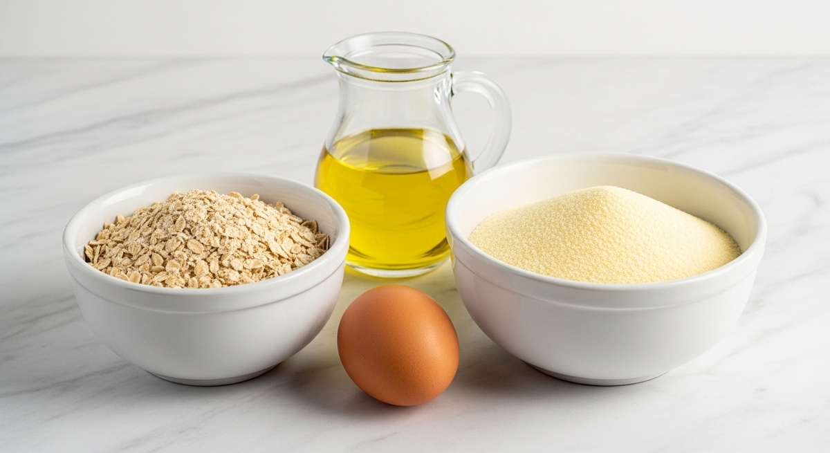 - Овсяные хлопья (40 г) — выбирайте те, которые требуют варки для создания пушистости и насыщенного вкуса.