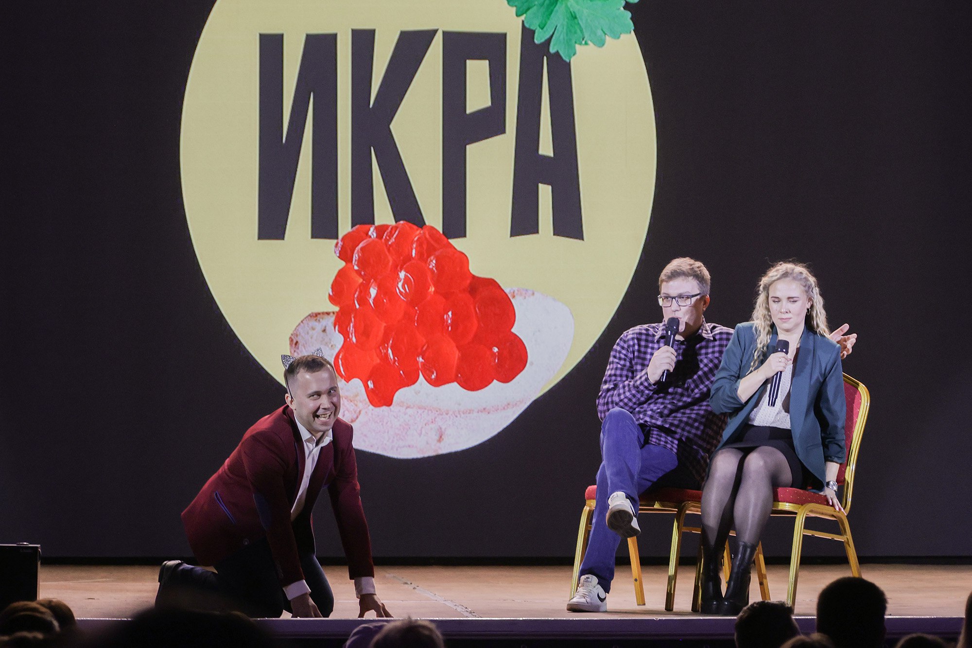 Второе место тоже у нашего университета — команды «Поколение». Это единственная из молодых команд, которая уже принимала участие в региональных играх КВН в Ярославле. Третье место жюри отдало сборной работающей молодежи Рыбинска и Ярославля «Икра».