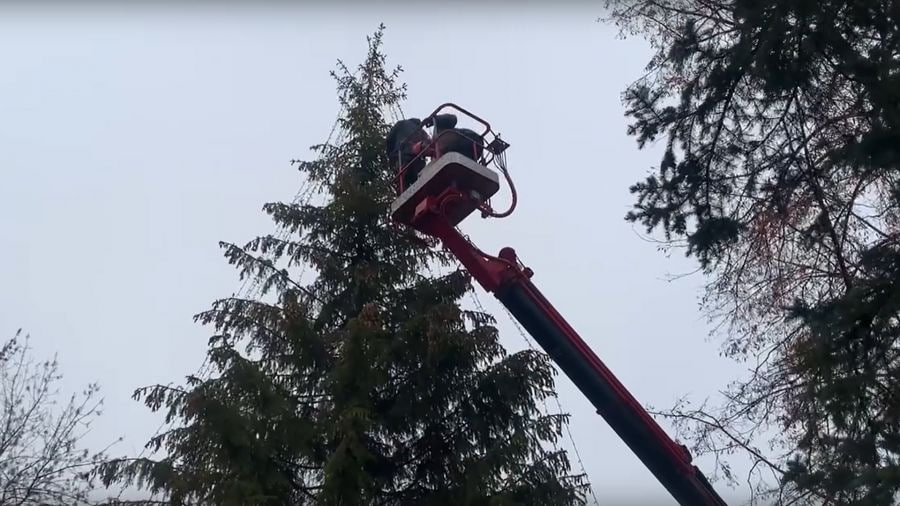 Гирлянда уже висит на ели на Бульварной улице. В ближайшее время ее подключат к электричеству, - сообщил глава города Дмитрий Рудаков.