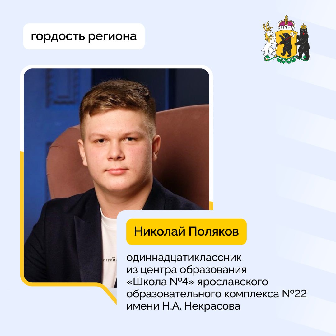 Потрясающая новость! Одиннадцатиклассник Николай Поляков из ярославской школы №4 (ОК №22) покорил всероссийский финал и стал «Спортсменом года» на конкурсе «Ученик года»!